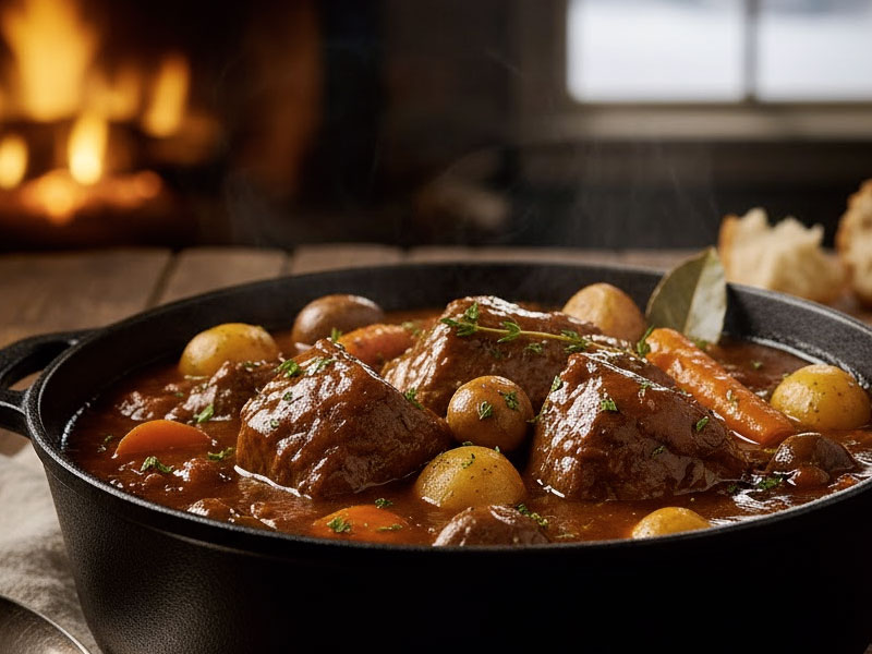 La carne de ternera para guisar es perfecta para guisos tradicionales, estofados o platos modernos de cocción lenta. El clásico guiso con vino tinto sigue siendo una de las recetas más populares, gracias a su salsa espesa y su sabor equilibrado. También triunfa el estofado con patatas, una receta sencilla que evoca los sabores del hogar.